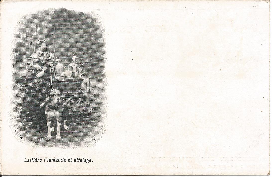 El uso de perros como animales de tiro fue extremamente común en la Bélgica de finales del XIX y principios del siglo XX. En esta excelente página, encontramos infinidad de detalles sobre el asunto. Por sólo citar algunos, sin entrar a traducir la totalidad de la página, citar que a inicios del siglo XX, Bélgica contaba con nada menos que 150.000 perros de tiro. Lecheras, lavanderas, vendedores de fruta y verdura, vendedores ambulantes en general… todos recurrían a la docilidad y a fuerza de una raza que fue fruto de años de cruces y selecciones: el mastín belga.